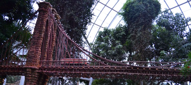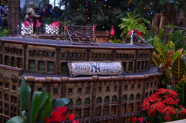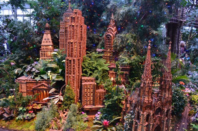 A ten minute walk east from the 4 train’s Bedford Park stop is the Bronx Botanical Garden. I would recommend a visit to this well manicured park anytime of the year but especially during the holiday season. Starting in mid-November, the Botanical Garden showcases its extraordinary collection of model trains set to a backdrop of iconic New York buildings made out of plant material.