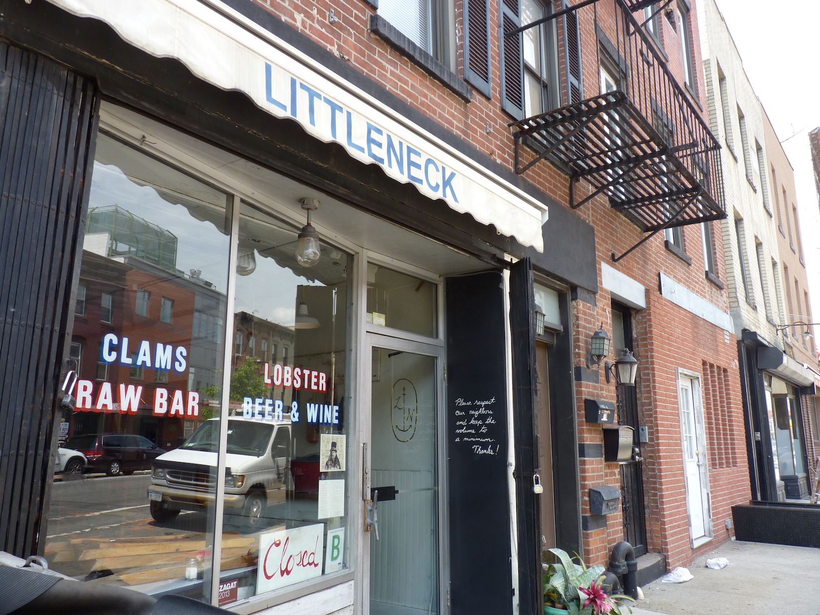 Littleneck is a restaurant well known for its clams at $12 a dozen, but you can also order anything from chicken ‘n waffles, to burgers, to glazed Polish bacon. One of their signature cocktails is the Red Headed Stranger, feature a ginger beer. They’re cash only, but there’s an ATM on location.