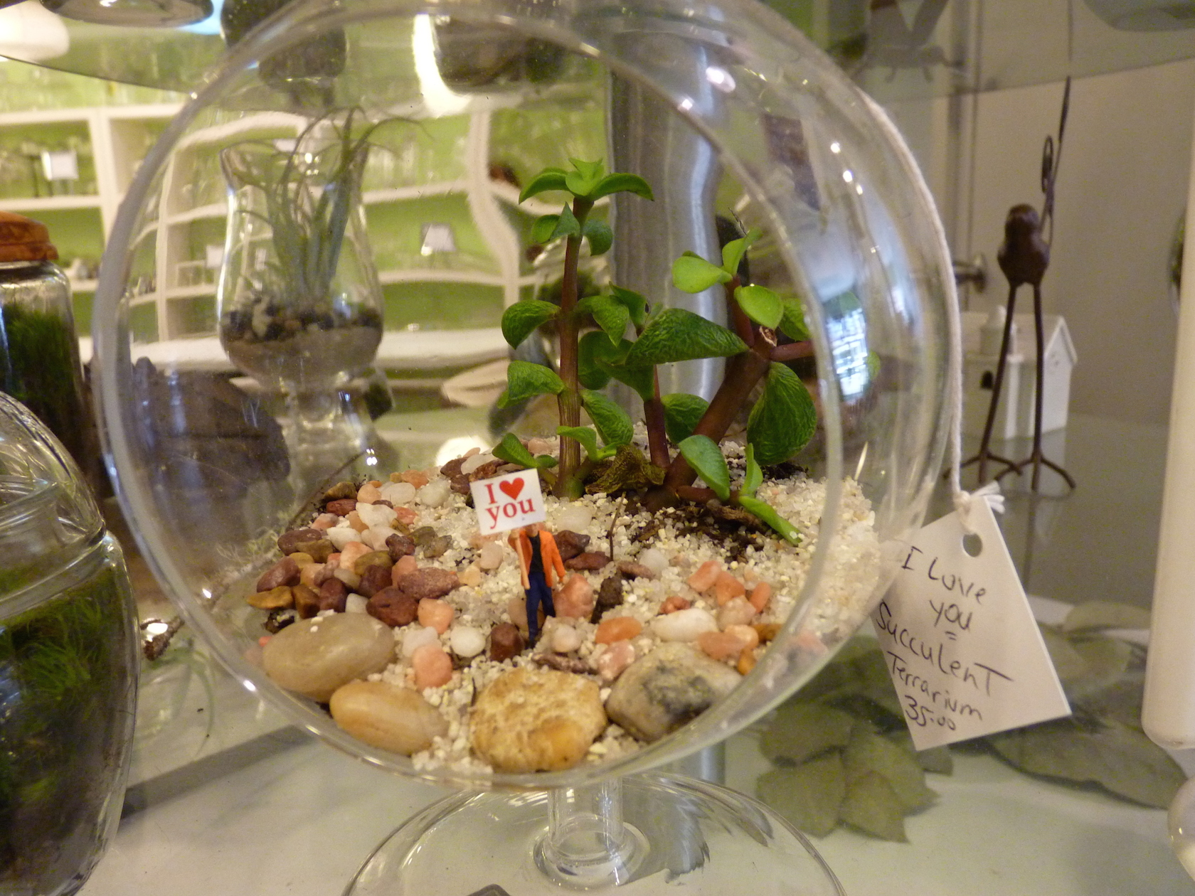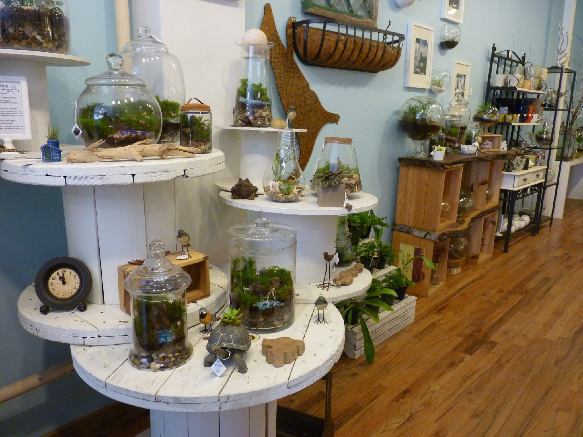Twig is a store where you can buy “moss terrariums and other small worlds,” which requires a visit so you can fully grasp the concept. For the uninitiated, a terrarium is basically a collection of small plants growing in a transparent container. At Twig, yours can be populated with miniature plastic fishermen, or zombies, for instance (the Zombie-arium sells for $145).