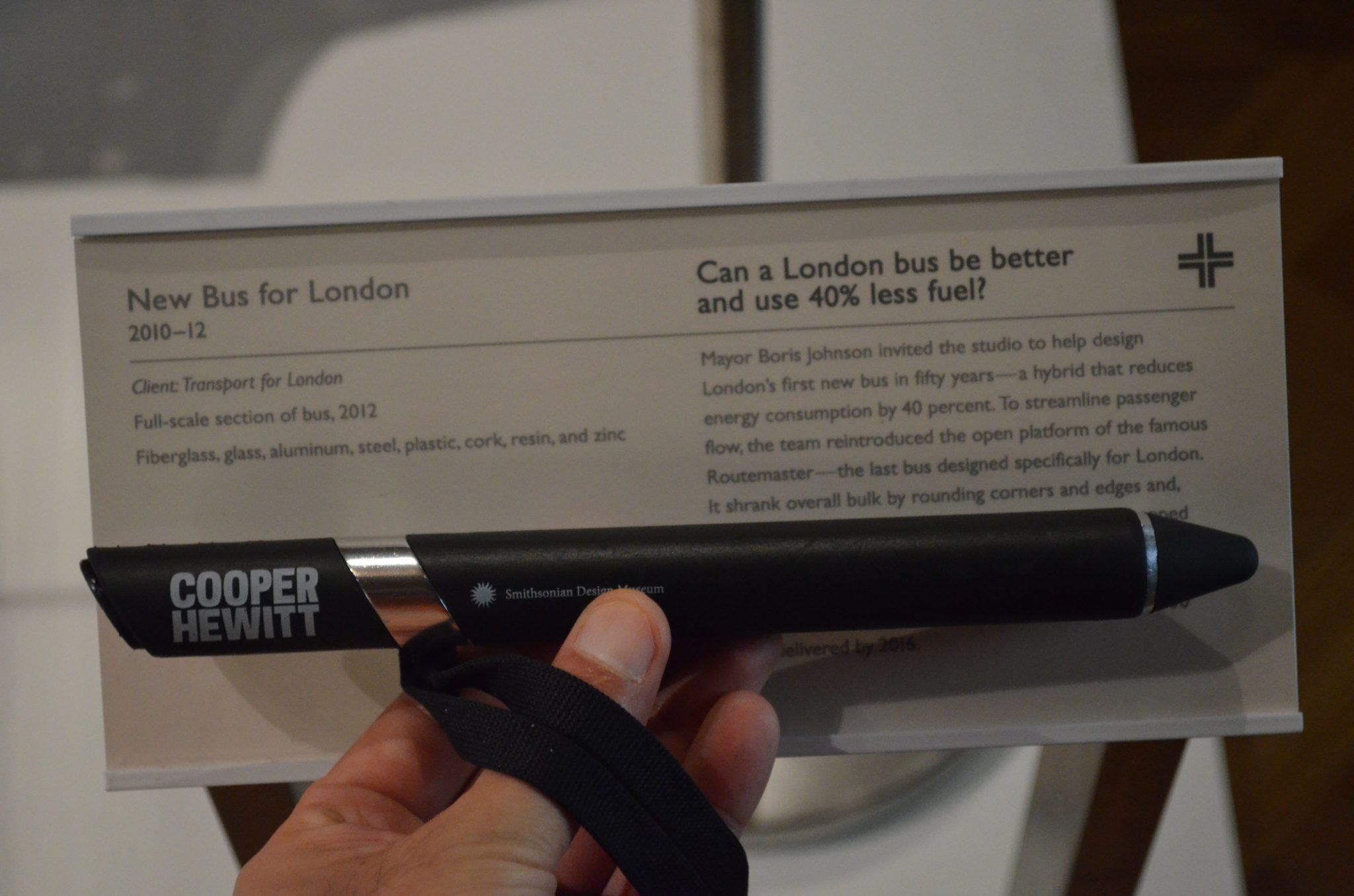 Aside from physical updates, the Cooper Hewitt introduced new technology in the form of a…..pen? Well, less of a pen and more of an oversized digital-stylus wand that allows the user to interact with the exhibits and curate an experience for later viewing and additional research. This feature alone is reason enough to visit the museum. As you explore the floors and work, simply touch your pen to the plus sign on the information cards and information will be saved to your own online portfolio. When you are finished touring, simply drop off the pen and you can go to the website later to relive your day. Additional features around the museum are large touch tables where you can use your pen to interact with the information.